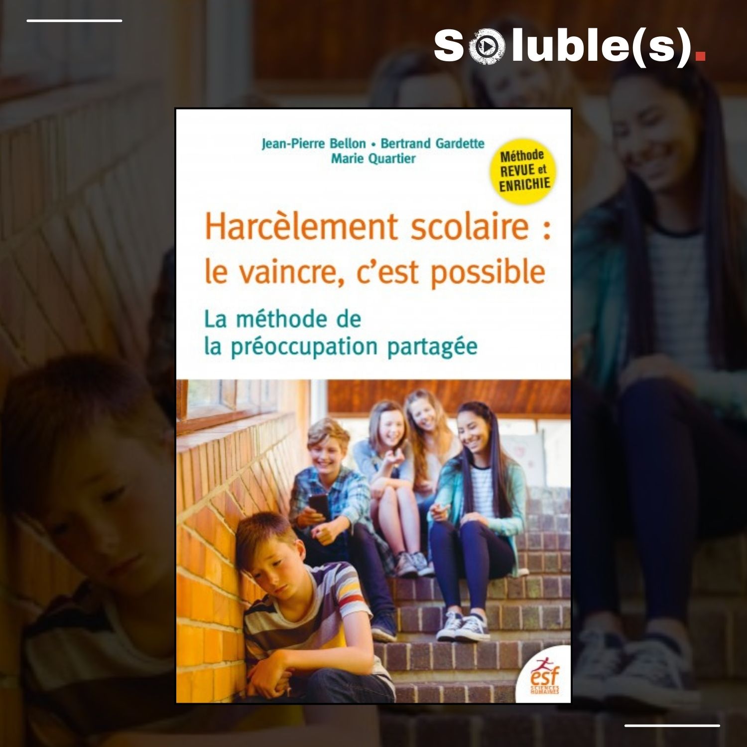 - La couverture du livre : Harcèlement scolaire : le vaincre c’est possible – La méthode de la préoccupation partagée Ed. ESF (Jean-Pierre Bellon – Bertrand Gardette – Marie Quartier).